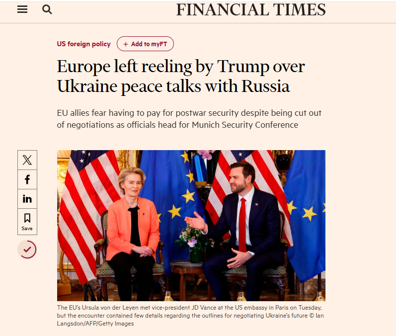 Trump is well aware that Zelensky does not want peace, and neither does Europe. They want World War III and have been trying to scheme to invoke Article 6 to try to force Trump to send troops to invade Russia. European officials now realize they will have to cover the cost of postwar security and cannot count on the USA funding their warmongering ways. They will have to cough up the cast Zelensky has been demanding to line his pockets for the reconstruction of Ukraine.